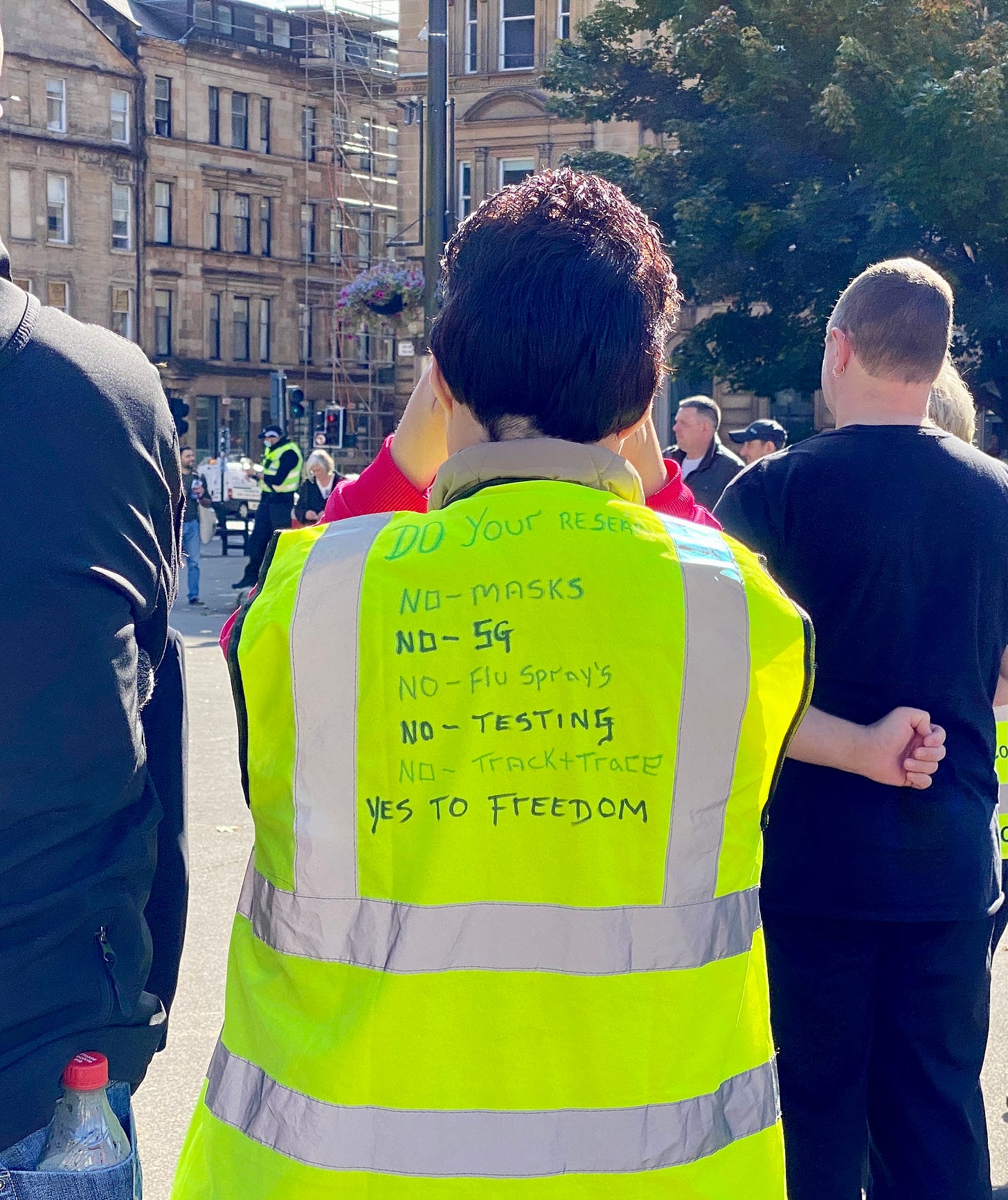26 September 2020. The protestors took on the aesthetics of the ‘yellow vest’ movement in France, but with a conspiracy mindset.