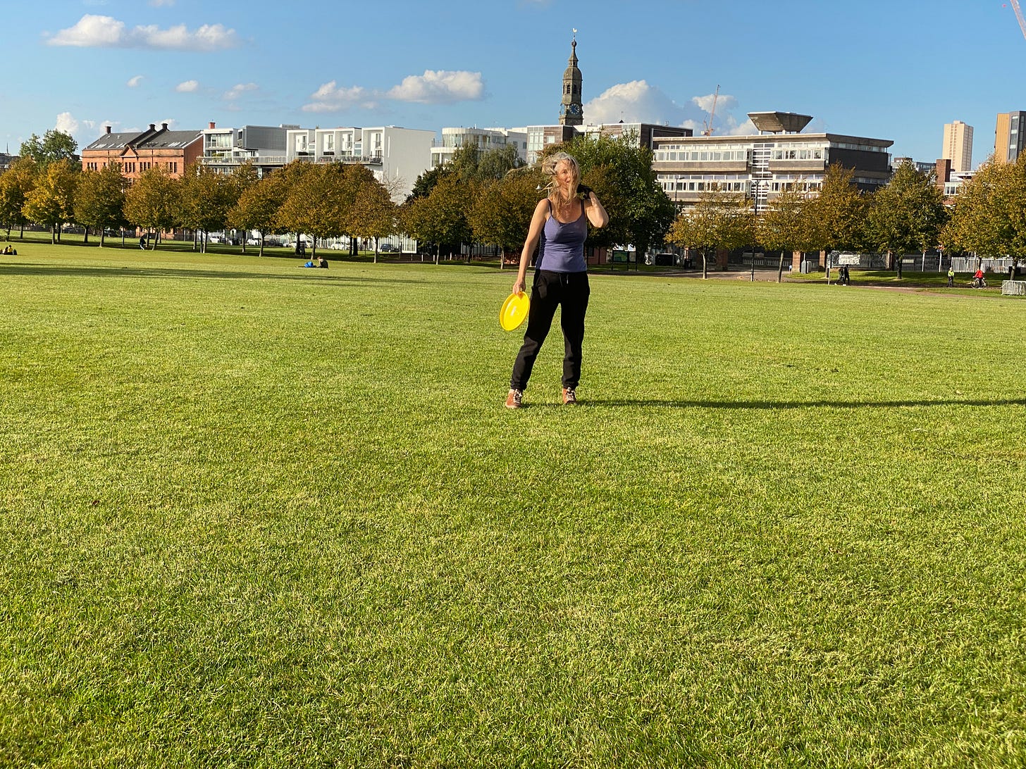 2 October 2020. Exercise was still outdoors. Here is Zoe with a frisbee, the perfect socially-distanced activity.