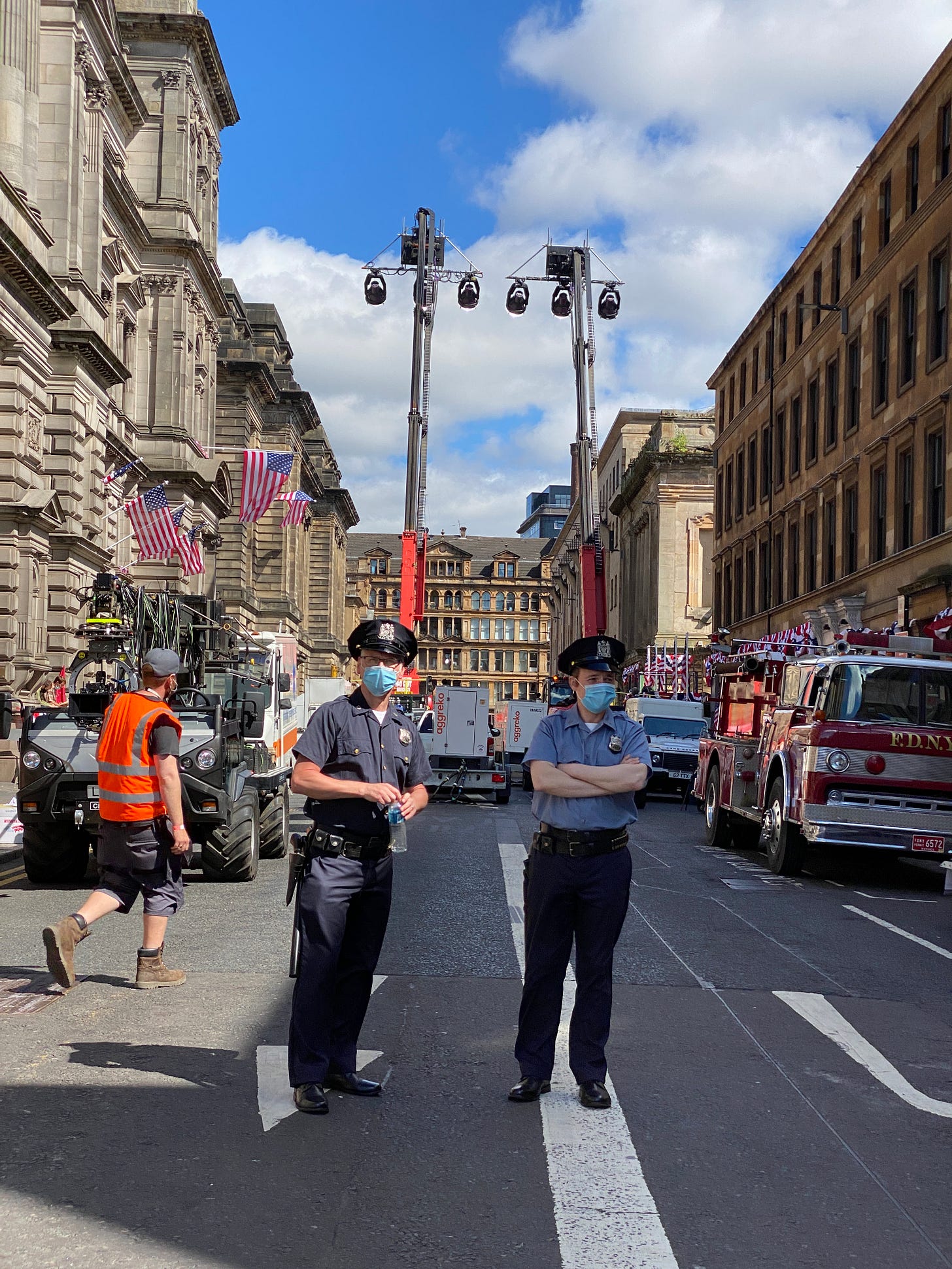 14 July 2021. Extras playing police in the forthcoming Indiana Jones film.