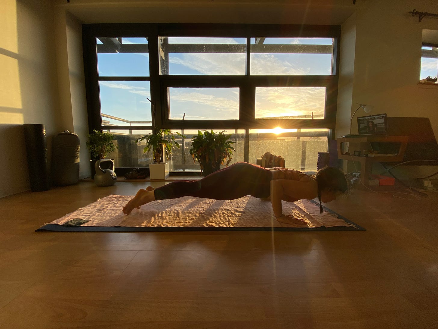 21 November 2020. Early on, Zoom became the way to conduct meetings and classes under lockdown. Here is Laura doing yoga with top Ashtanga Yoga teacher, Laruga Glaser.