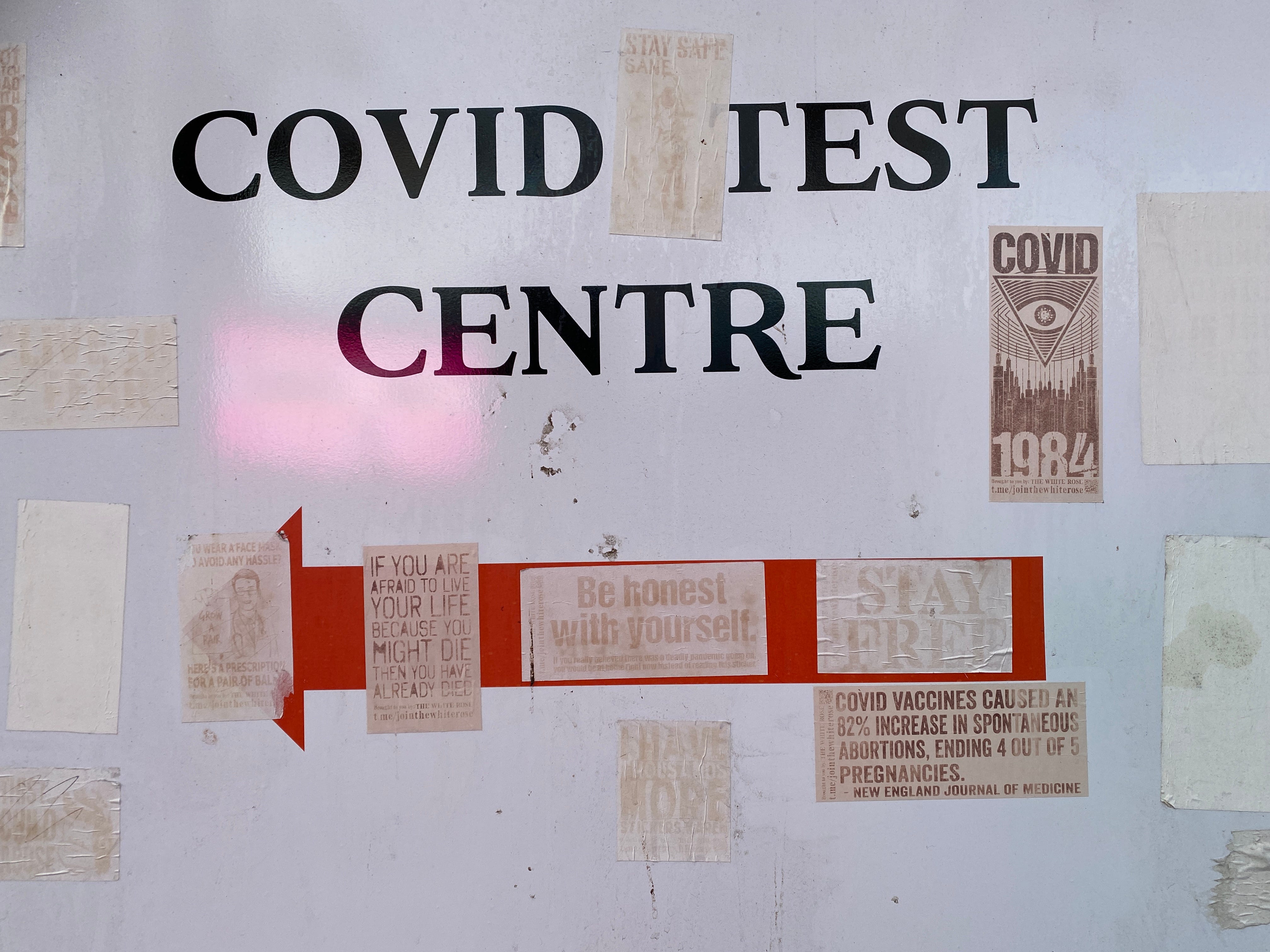2 November 2021. Stickers appeared asking people to question vaccines.