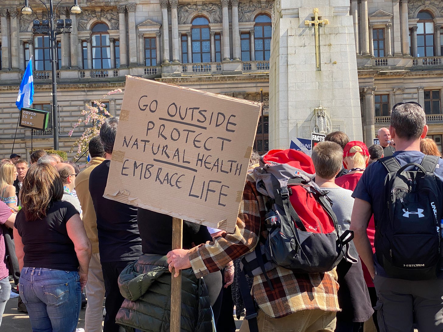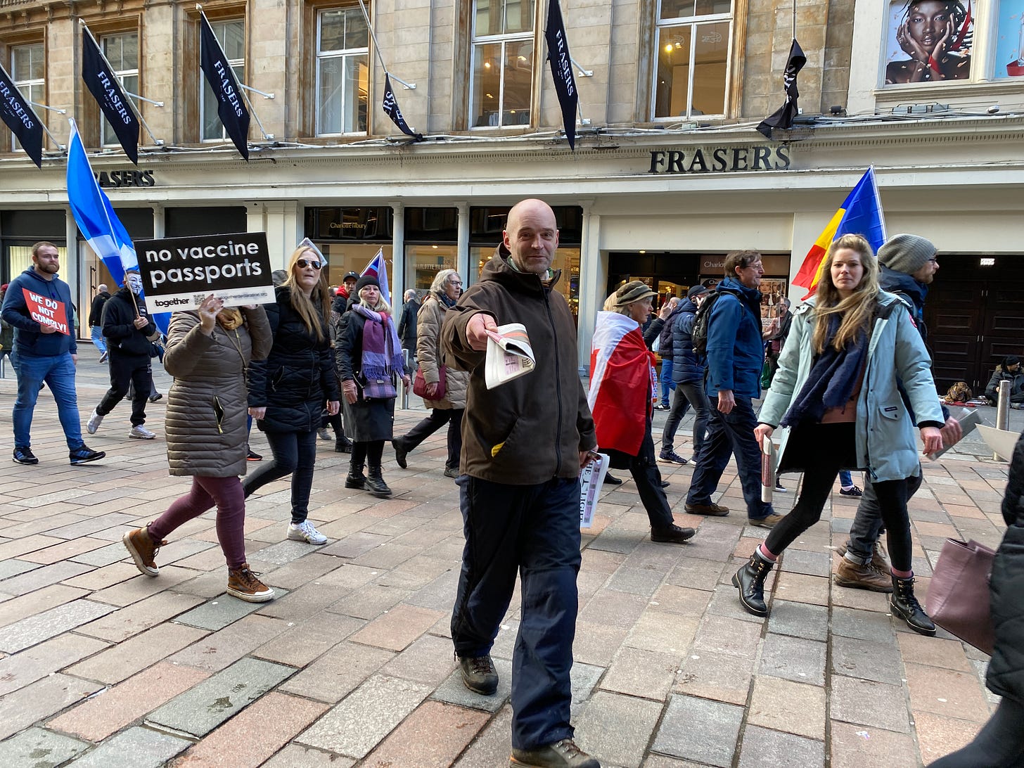 16 May 2020. The first lockdown protest was attended by about 12 people. My video of this guy went viral and was picked up by the Daily Record.