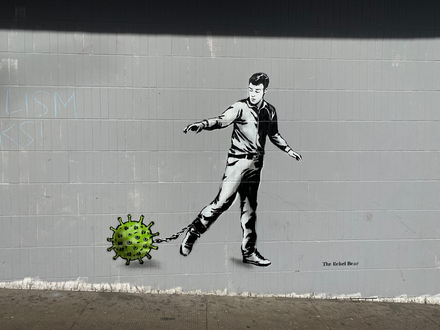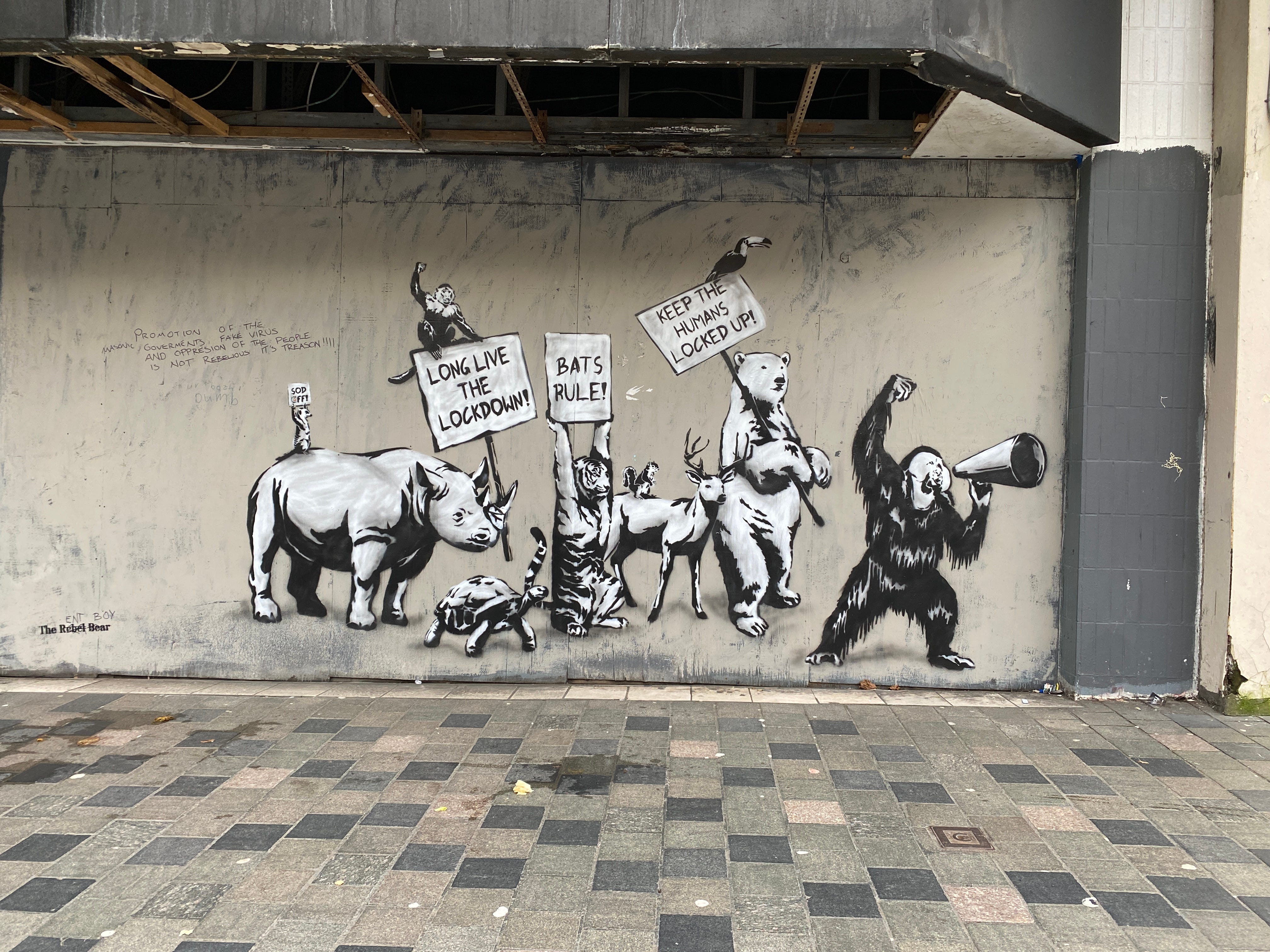 12 April 2020. Of all the graffiti artists to have taken the challenge of communicating the moment, The Rebel Bear, was my favourite.