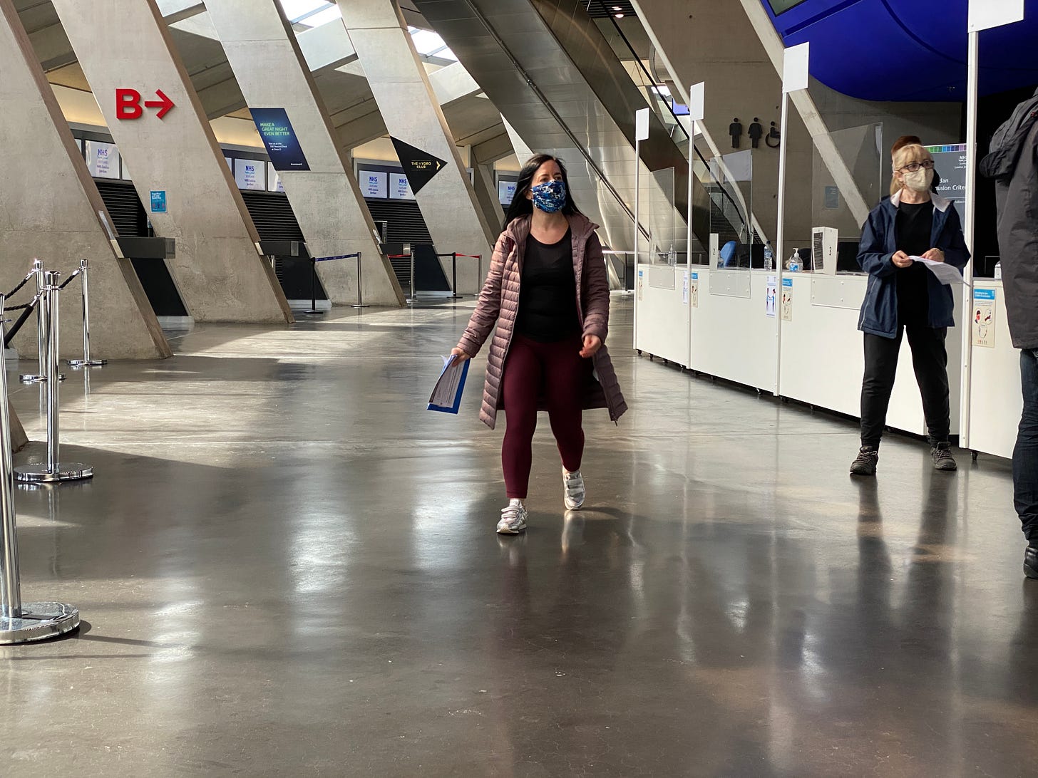 26 May 2021. Laura in the Hydro to get her jab. Vaccination was the great hope to get everything back to normal.