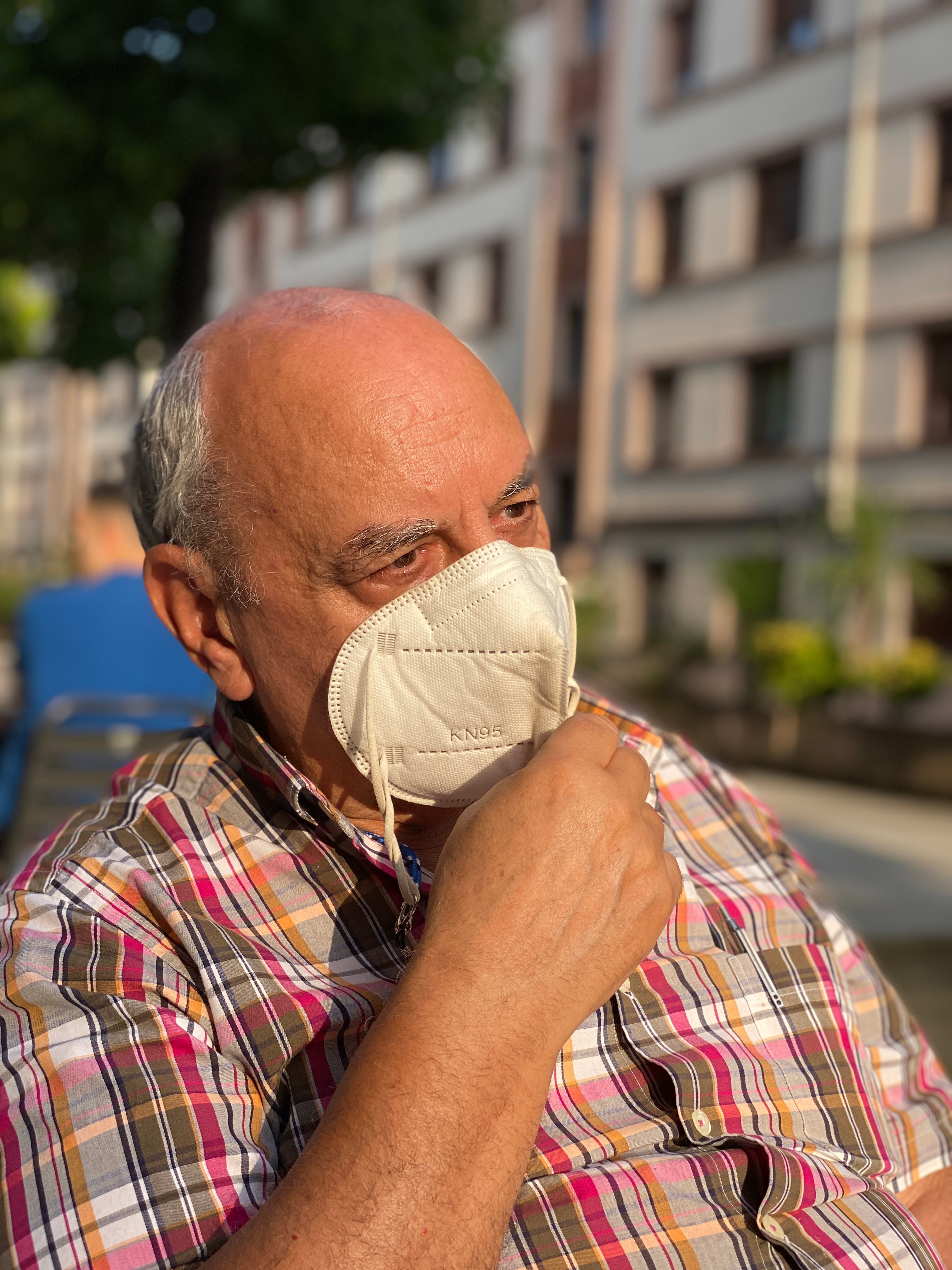20 August 2021. Pedro complies with the law to wear a mask outside, even when there is no one around.