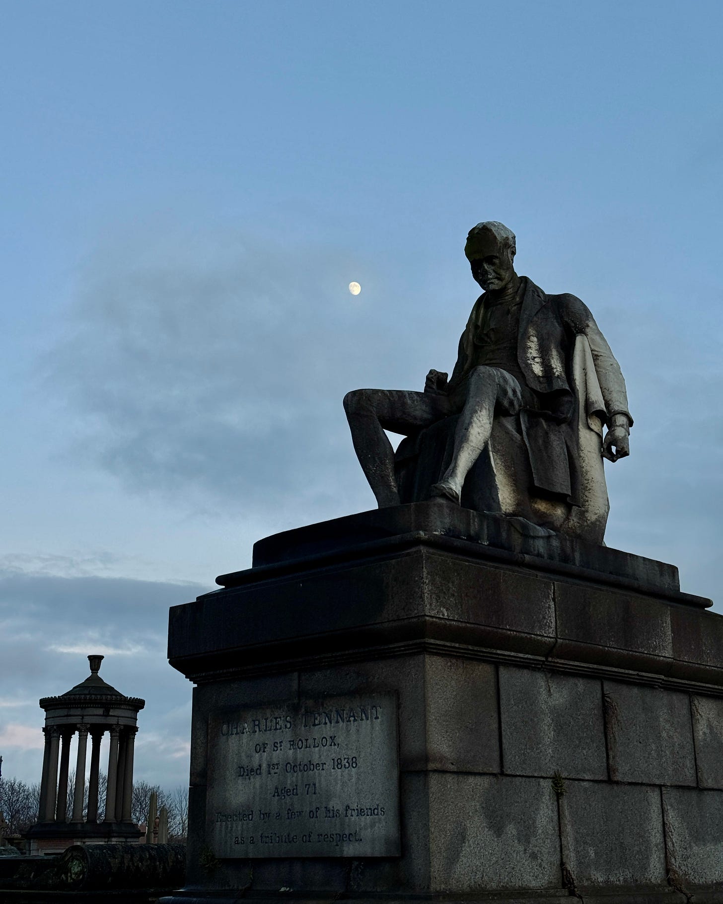 I cleansed myself of this experience by walking around the Necropolis. Saying hello to the industrialist Charles Tennant, a man who built an empire by finding a better way of bleaching cloth. His notable descendants include the Bright Young Thing, Stephen Tennant, among many others.