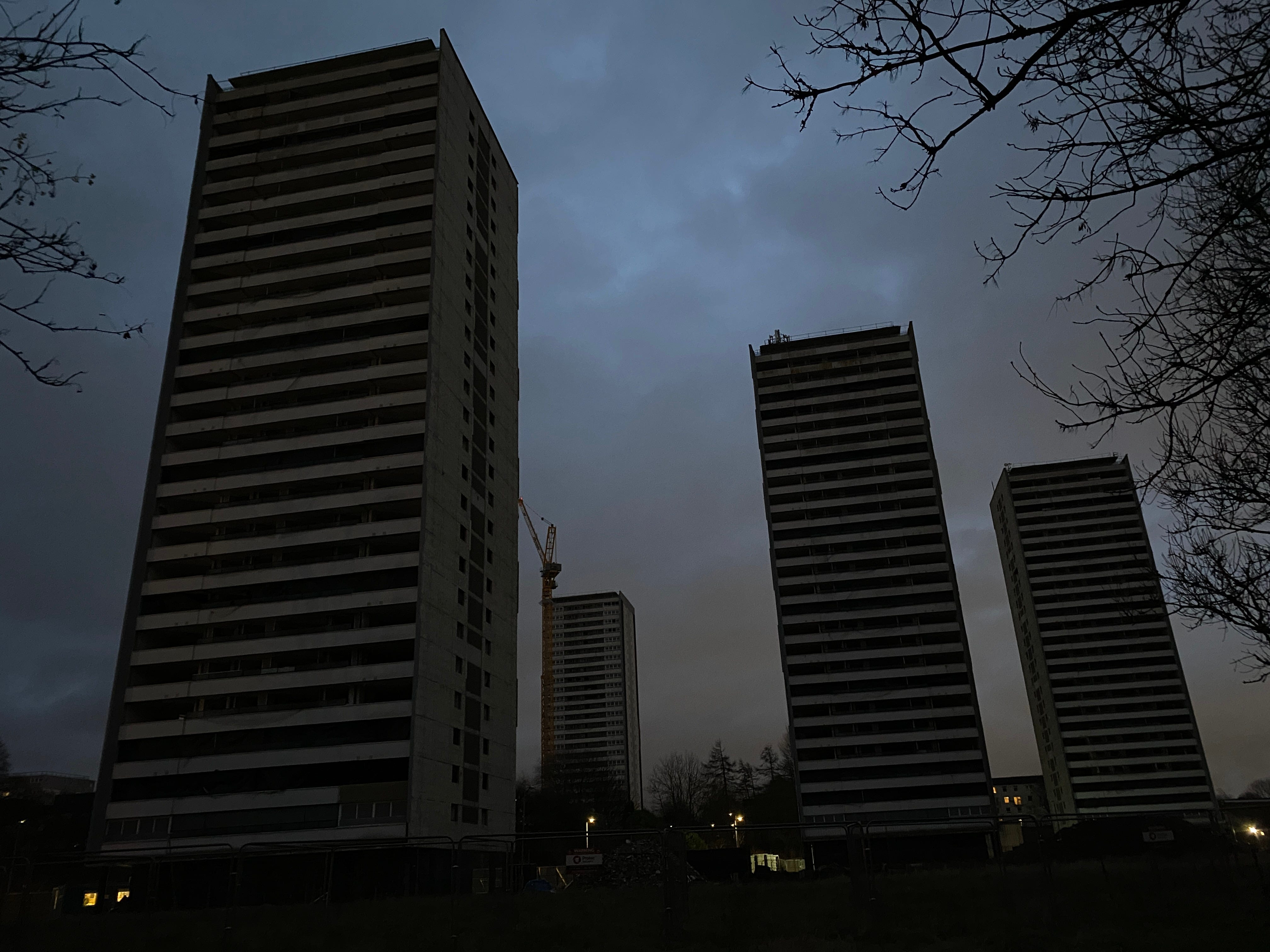 Today is the solstice and we have emerged from the darkest days of winter. I’ve not been walking or getting out much lately, but cycled across to Maryhill on Monday afternoon after hearing that The Wyndford flats were being demolished.